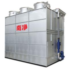 1、閉式冷卻塔實際上是一種蒸發式冷卻塔,冷卻器和濕式冷卻塔的組合,它是臥式的蒸發式冷卻塔,工藝流體在管內流過,空氣 在管外流過,兩者互不接觸。閉式冷卻塔是傳統冷卻塔的一種變形和發展。塔底蓄水池內的水由循環泵抽取后,送往管外均勻地噴淋下來。與工藝式流體熱水或制冷劑和管外空氣并不接觸,成為一種閉式冷卻塔,通過噴淋水增強傳熱傳質的效果。